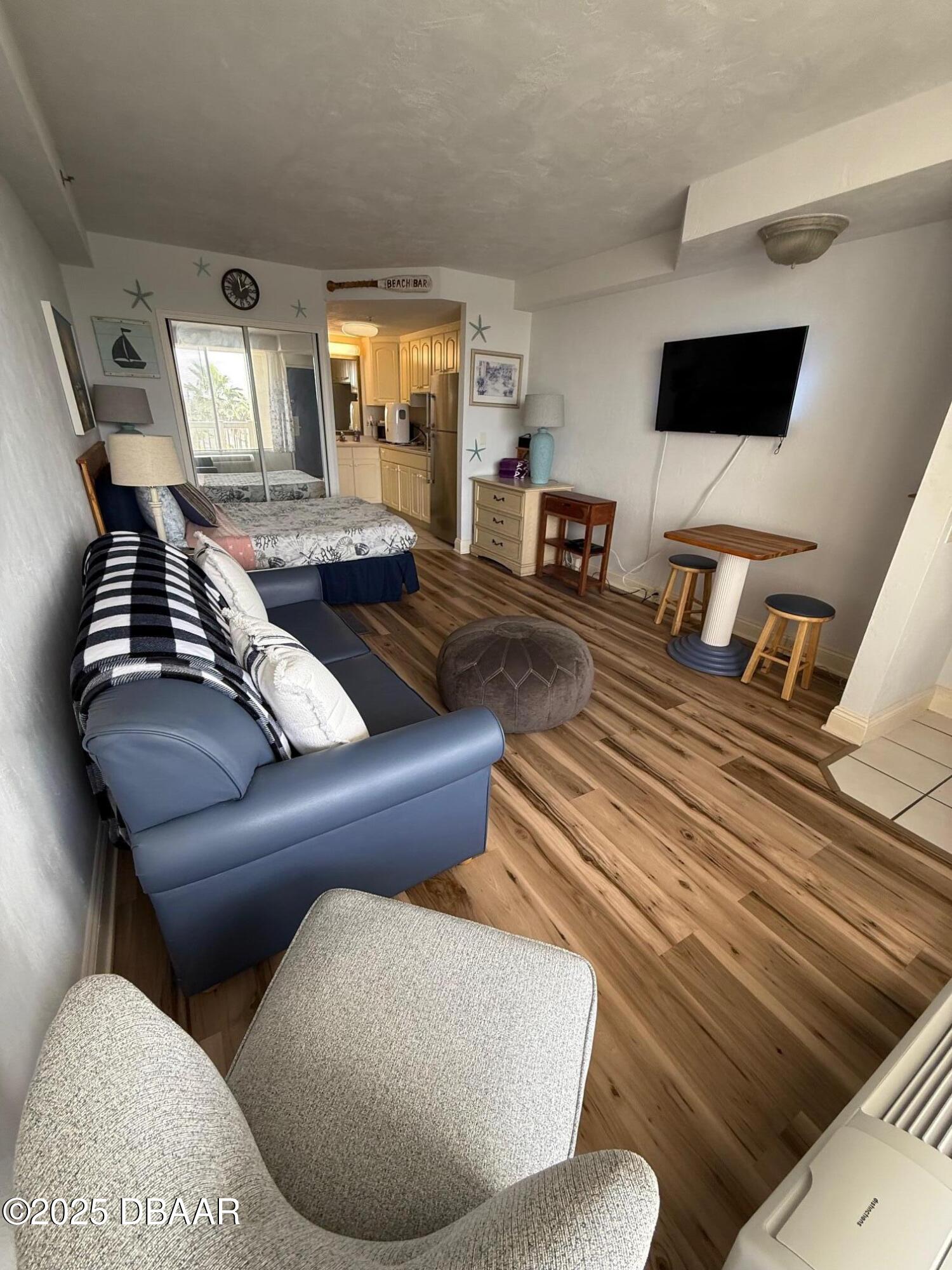 Affordable beachfront living in iconic Daytona Beach Resort. This fully furnished studio unit with city view, features a queen bed and sleeper sofa and fully equipped kitchenette with cooktop stove, microwave and refrigerator. Conveniently located near shopping, pharmacies and area attractions. The unit can be used as a short term rental property on multiple platforms or used as your primary or secondary home. LIFE IS BETTER AT THE BEACH!